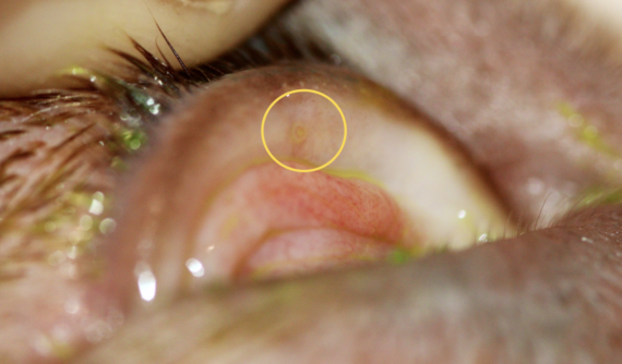 Las úlceras son como pequeñas heridas en la superficie del ojo que pueden resultar muy dolorosas y causar molestias significativas. En este caso, la úlcera fue causada por un cilio ectópico en el párpado superior.